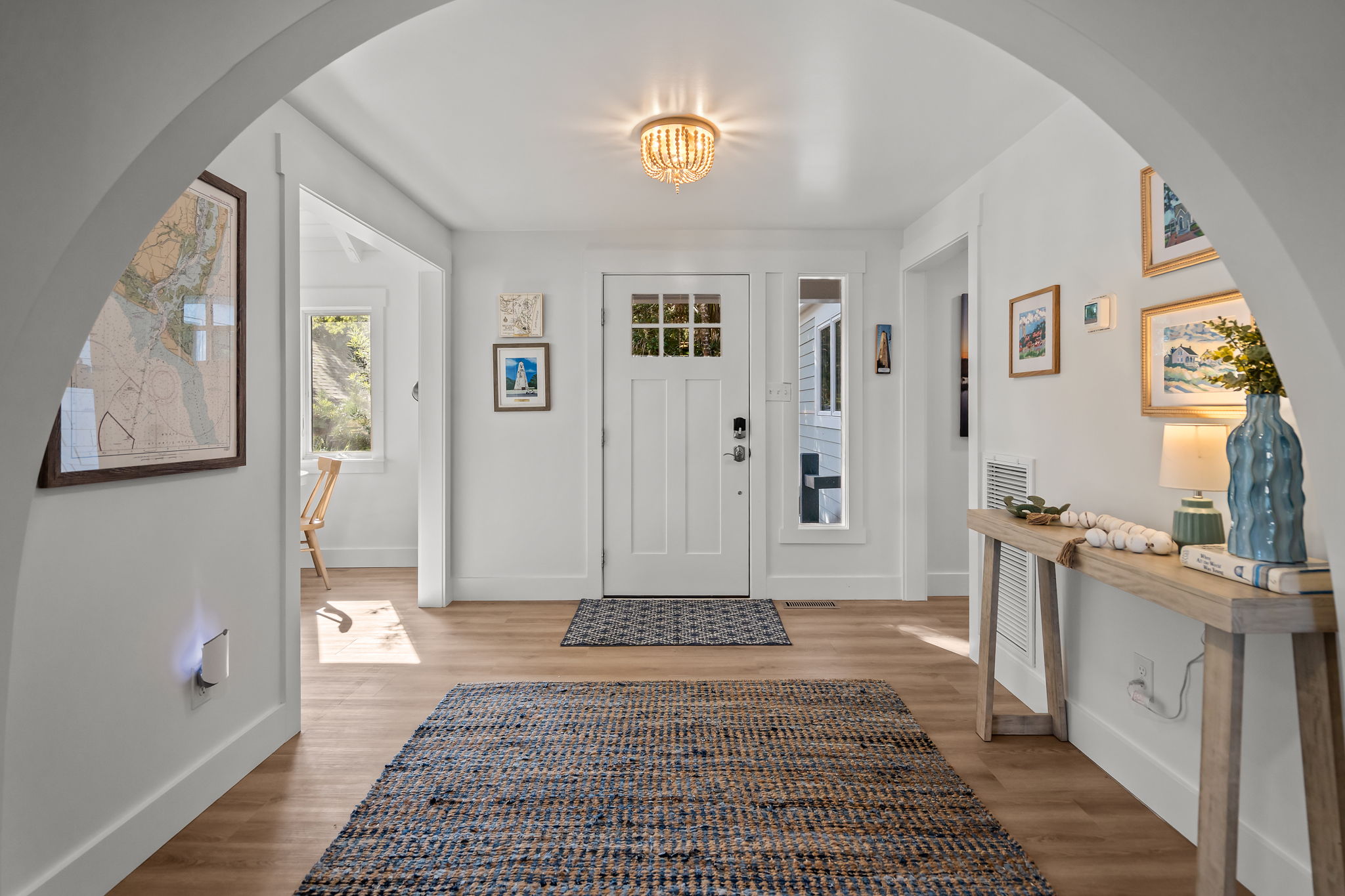 Historic island home—fully renovated & wheelchair accessible! This one-story, 5BR/5.5BA beach retreat blends coastal charm with modern comfort. Step-free entry, wide doorways, roll-in shower. Spacious deck under live oaks, smart TVs, fast Wi-Fi, and a modern kitchen. Walk or golf cart to beach, shops, and Bald Head Island Club. Perfect for families, groups & mobility-impaired guests.This exceptional home also includes three four-passenger golf carts, making it easy to explore the island in style. BHI Club Membership available for an additional fee.