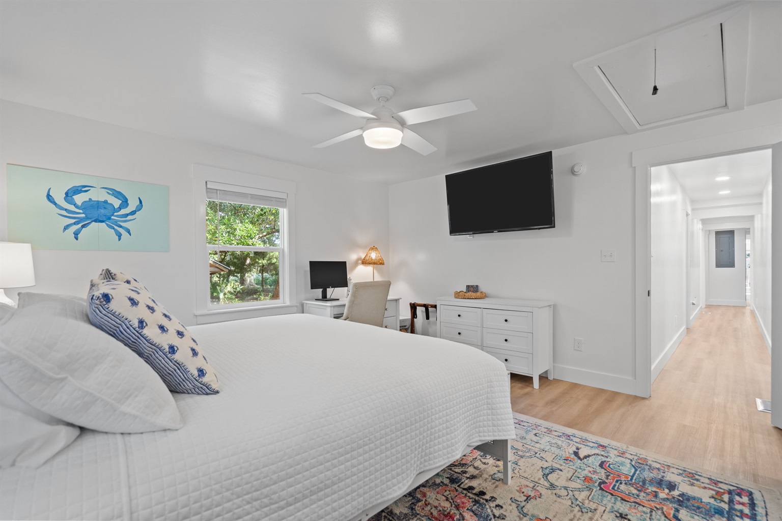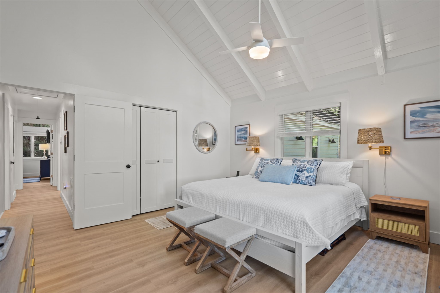 Primary: A serene retreat featuring a king bed and a private ensuite bathroom for a restful, luxurious stay with private access to a serene porch so you can enjoy peaceful mornings or sunset views overlooking the lush fairways of the golf course. Crab King: Another spacious king suite with its own ensuite. This bedroom also features a private office equipped with a monitor, printer, and ample desk space—ideal for remote work or extended stays. Heron King: Comfort meets style in this elegant room with a king bed and private ensuite, ideal for relaxation after a day on the island. Coral King: This cozy king room is just steps from its own dedicated bathroom in the hallway. While not ensuite, this bathroom is private to the room, as a separate half bath is available for shared use. Bunk Room: Designed with younger guests in mind, the bunk room has four full beds and also includes its own private ensuite with a tub, making it as functional as it is fun. |