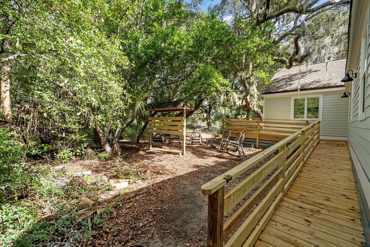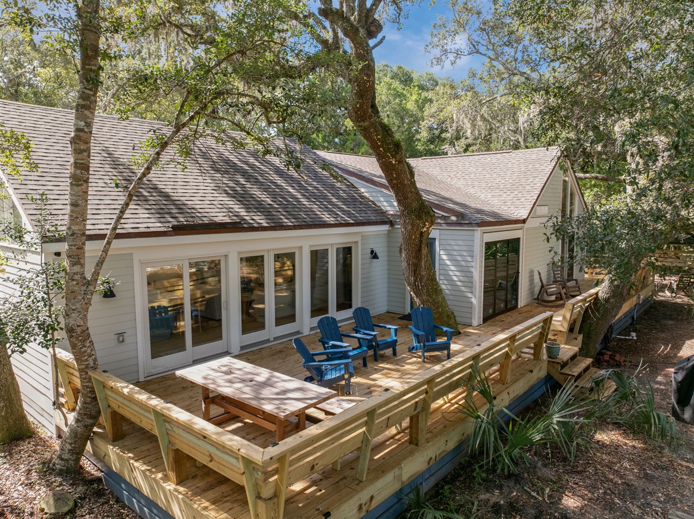 5 Bedrooms • 6 Bathrooms (5 full, 1 half) 6 Baths (5 full, 1 half) • Sleeps 8-16Fully renovated in 2025, this beautifully restored 5BR/5.5BA historic home is nestled in the heart of Bald Head Island’s Maritime Forest on a rare double lot, offering serene golf course views and complete privacy. Designed with both style and accessibility in mind, the entire home is on one level and features an accessible entry ramp, ensuring ease of access for all guests.